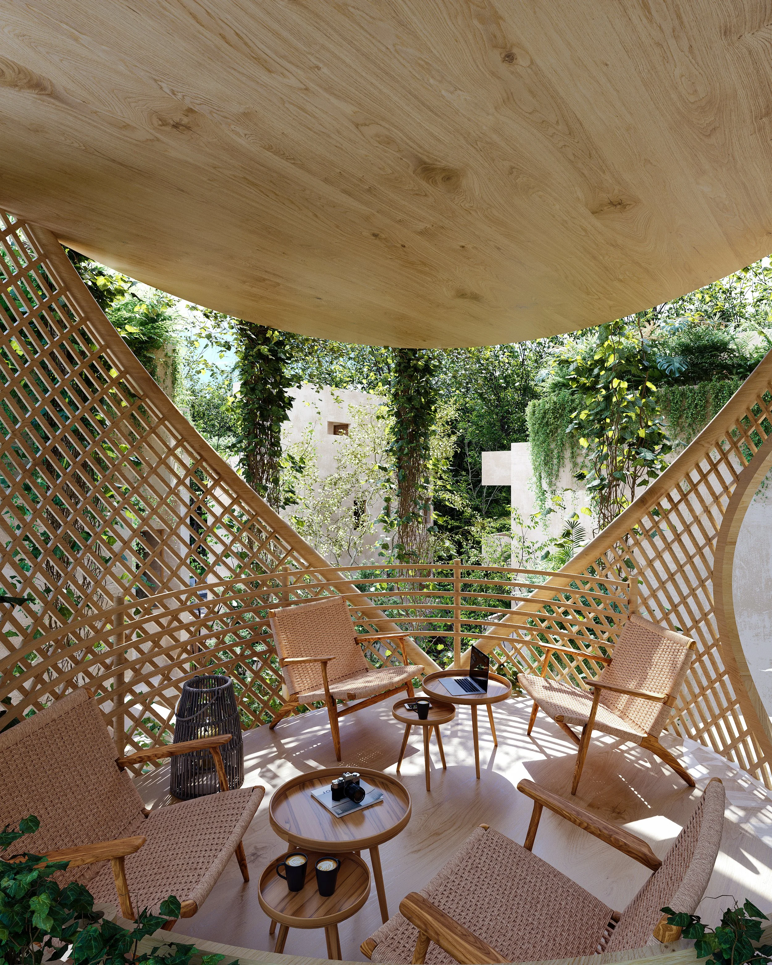 Landscape architecture that preserves the dense jungle foliage of the region.